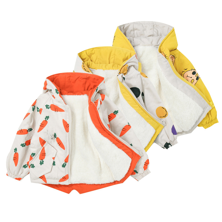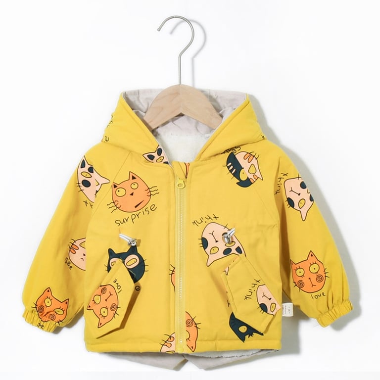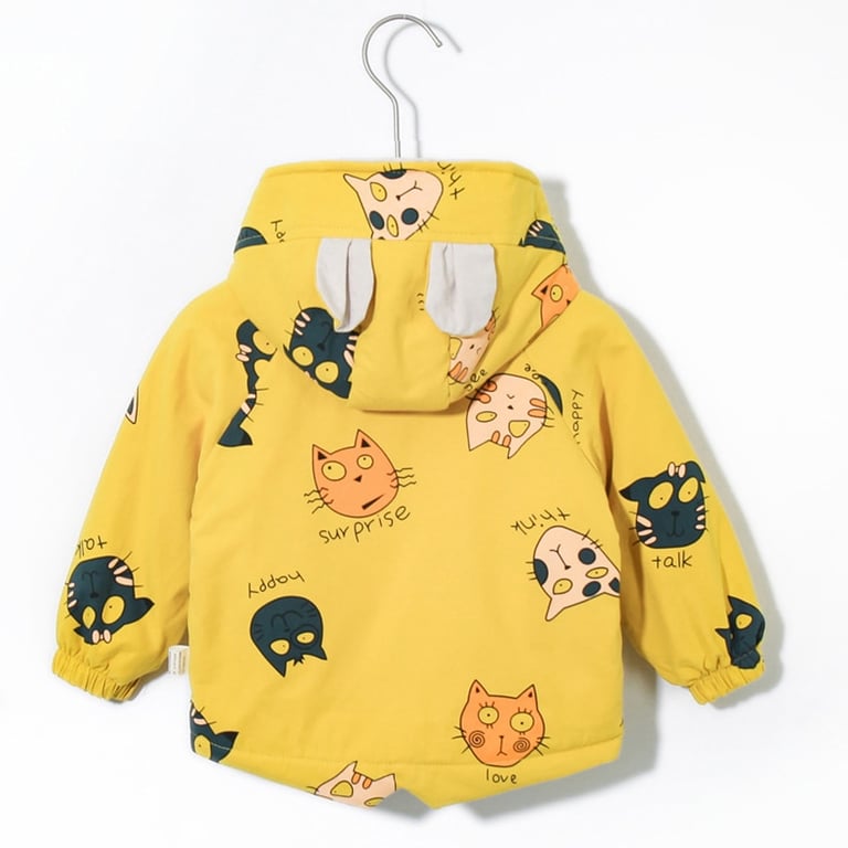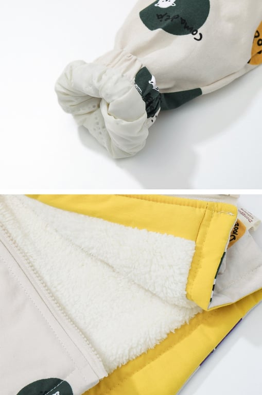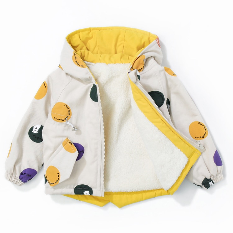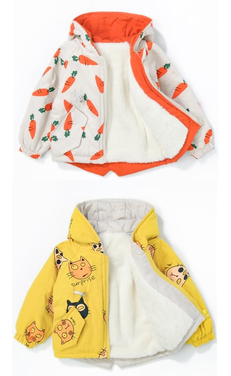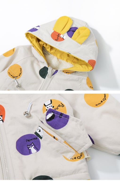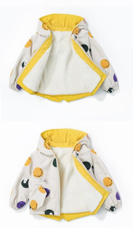This children's fleece parka with a hood and cute print will become a favourite piece for every boy.