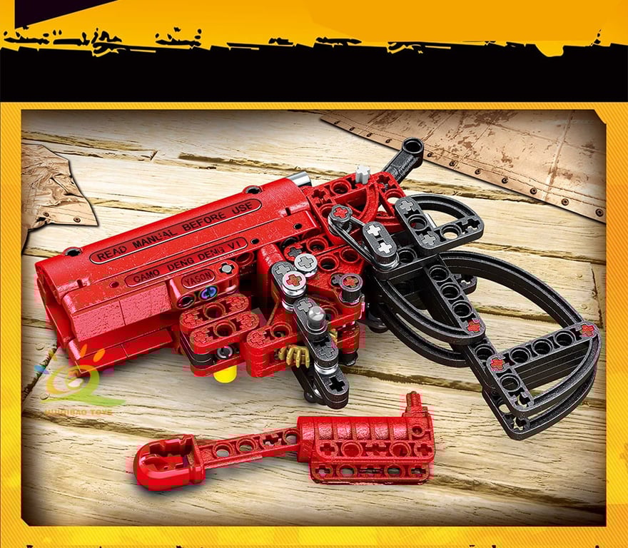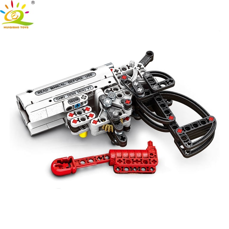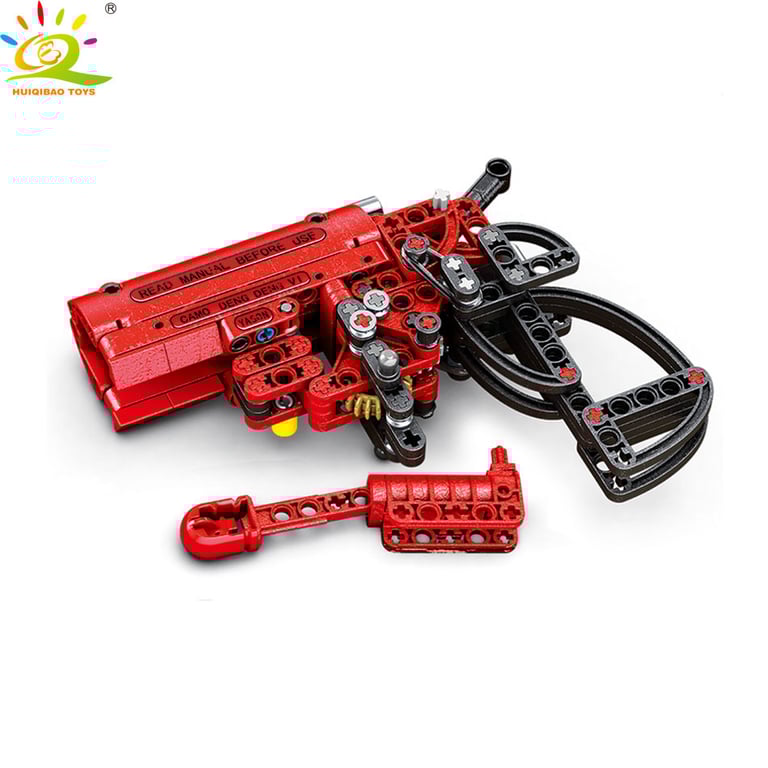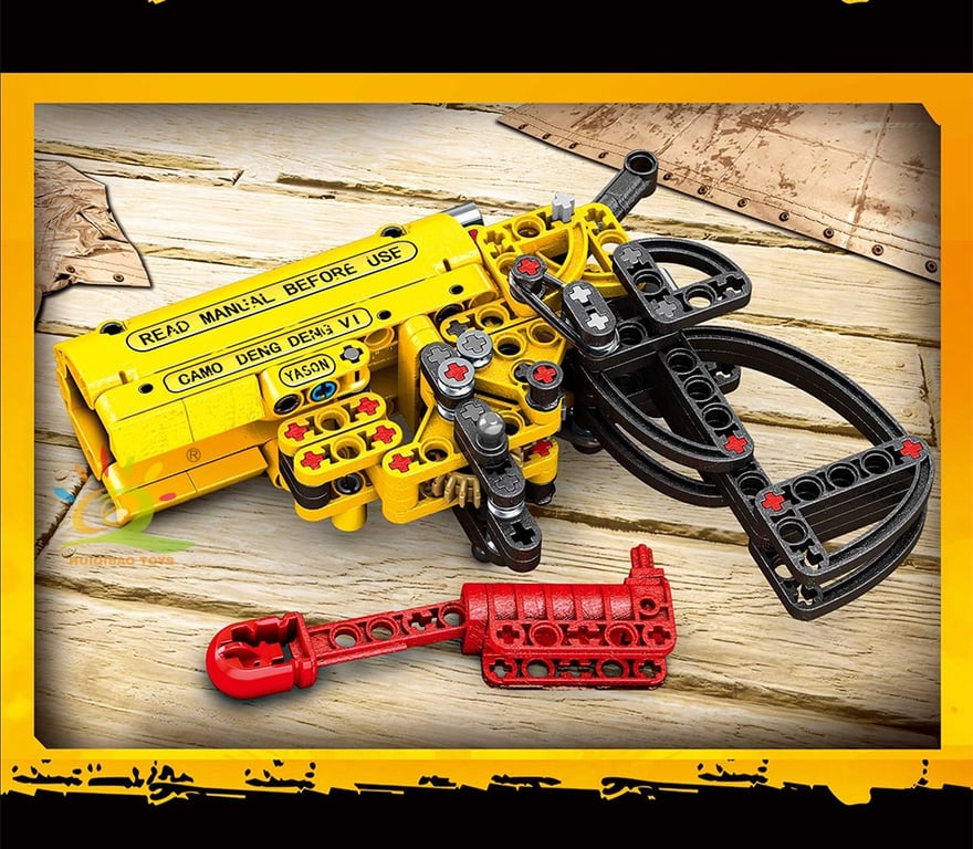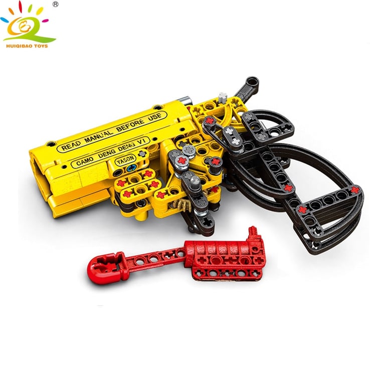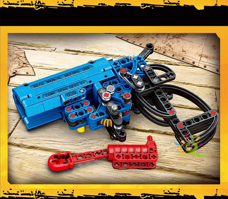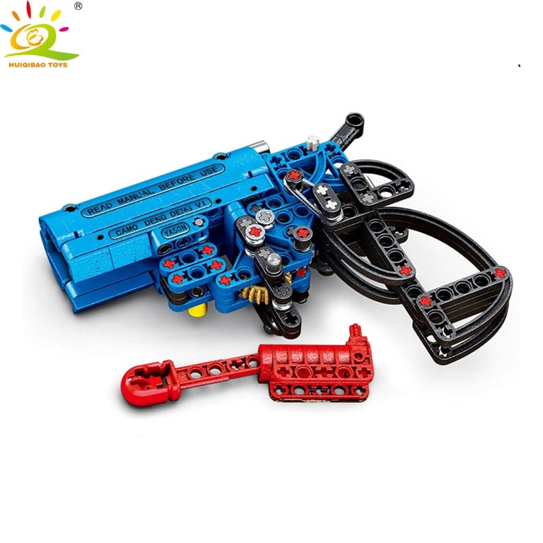 Quality children's construction toy themed around a shooting pistol. As a gift, you will receive 6 cones that serve as targets.