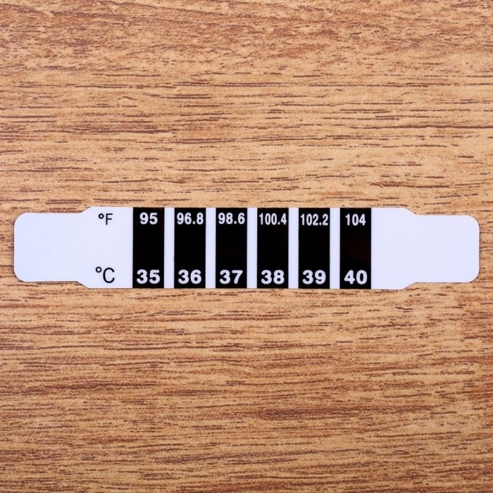 You place the thermometer strip on the child's forehead, and the strip measures your child's temperature. It can also be used while the child is sleeping.