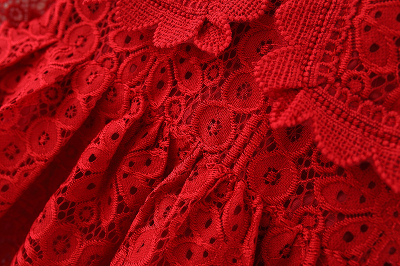 • Lace dress with long elasticated sleeves and a richly decorated collar around the neck.