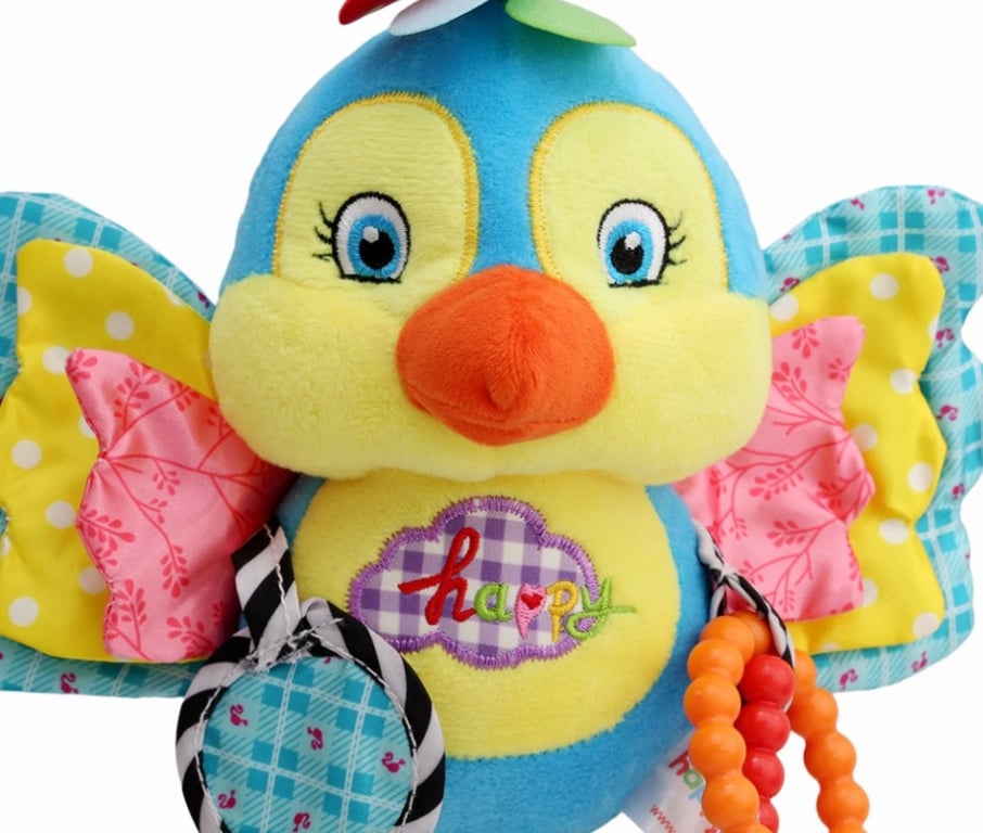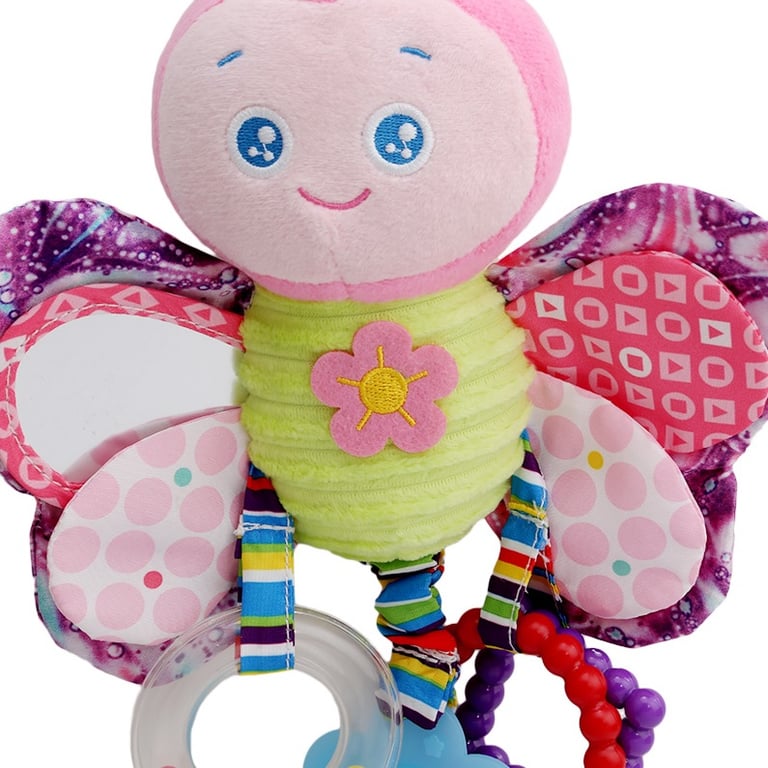 We have a choice of a bunny, a bird, a butterfly, or a chick that you can hang on both the stroller and the crib.