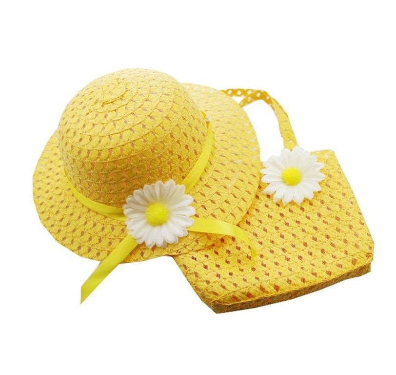 Beautiful girls' summer set – straw hat and bag in the same colour.
