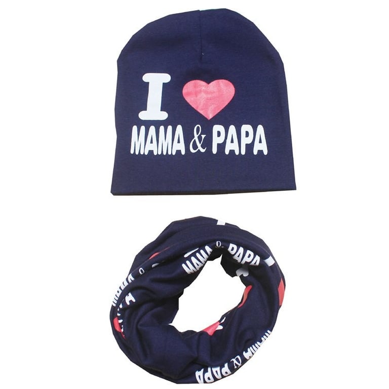 Children's hat and neck warmer I love mama and papa