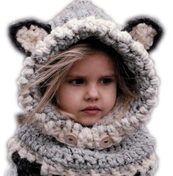 This beautiful hat with an animal-shaped neck warmer will delight your little one.