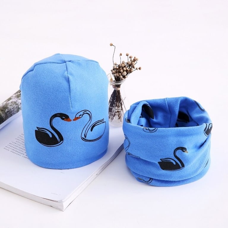 Children's hat and neck warmer with swan