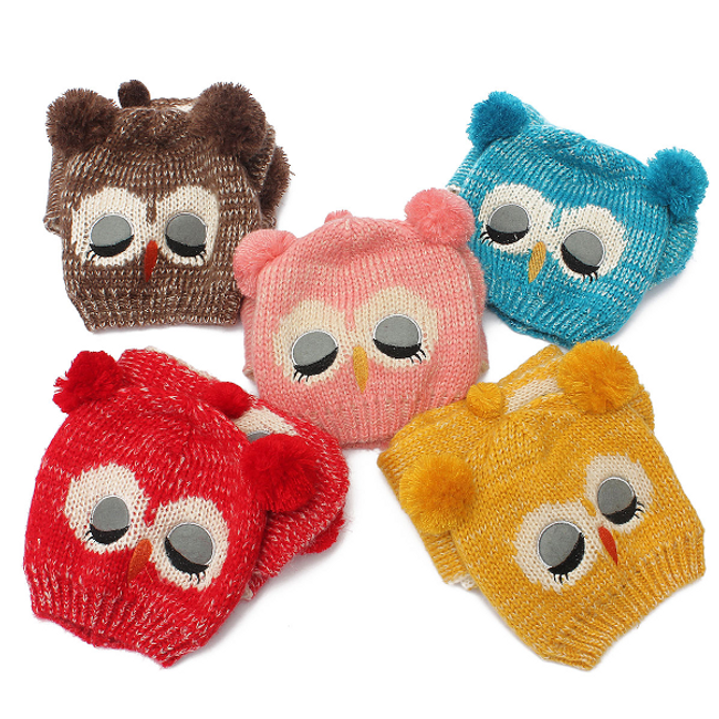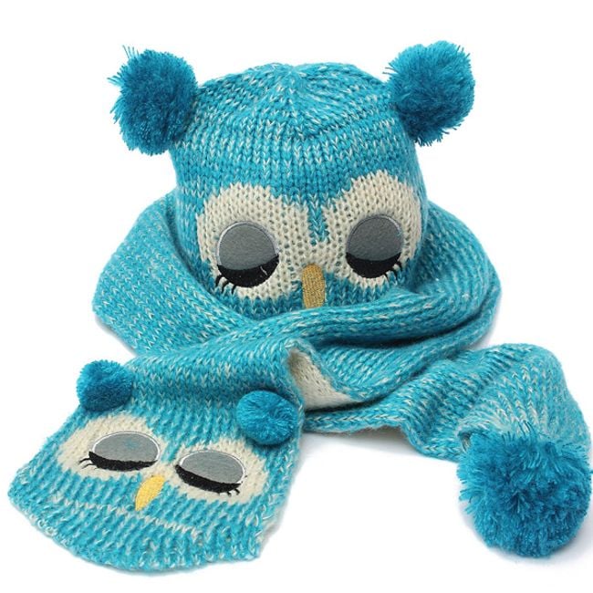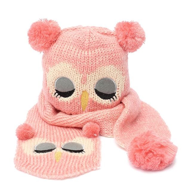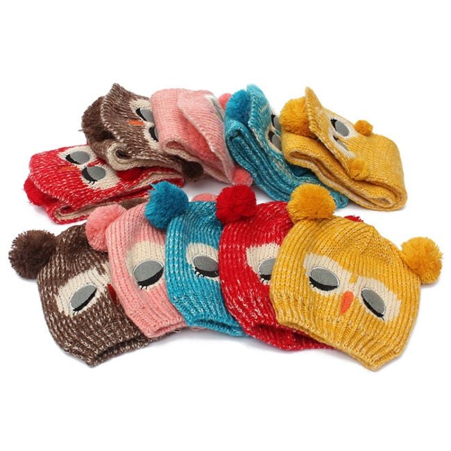 Children's hat and scarf set with an owl motif that will keep you warm. If you plan to take your child sledding after the snow falls, don't forget to put this hat on them. They will be impossible to miss.