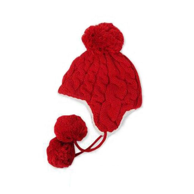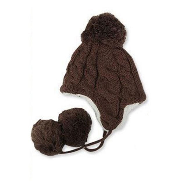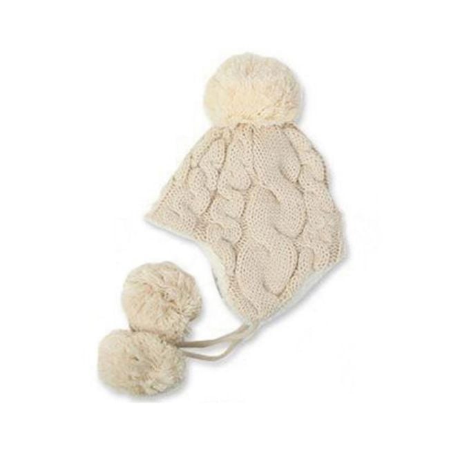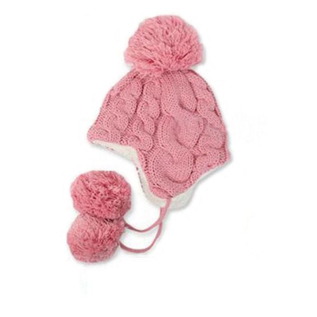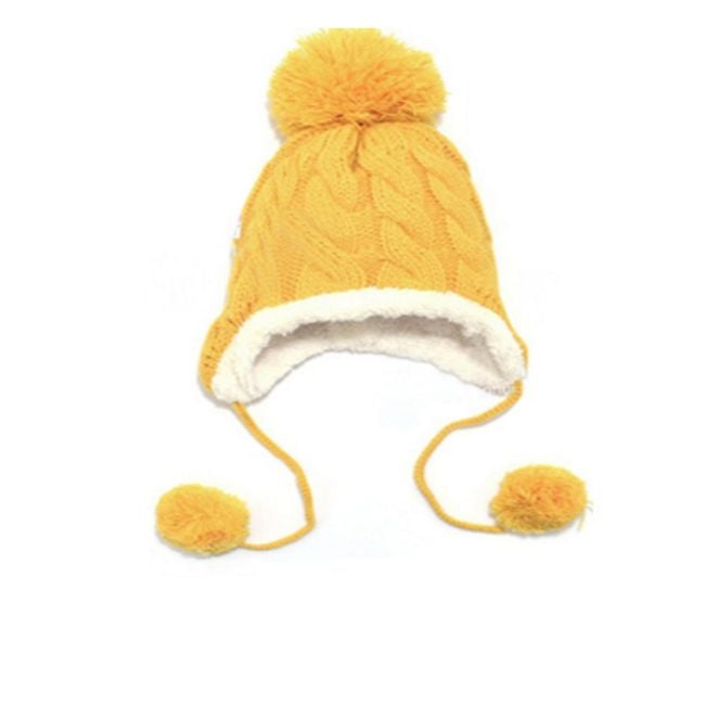 Warm children's hat with pom-poms and an ear-covering design is available in multiple colours.