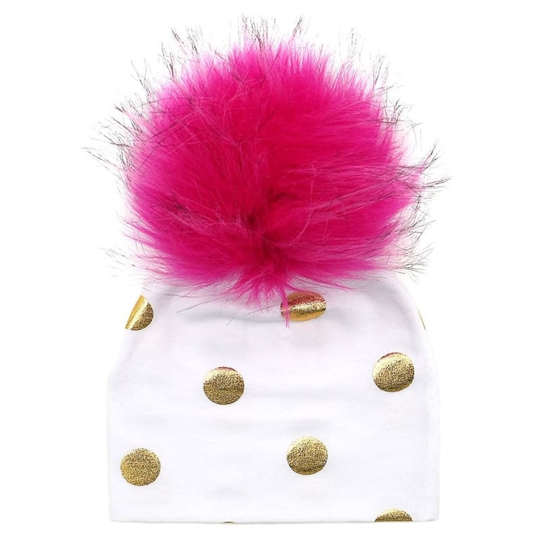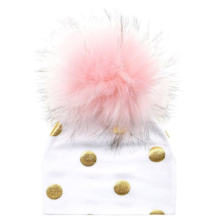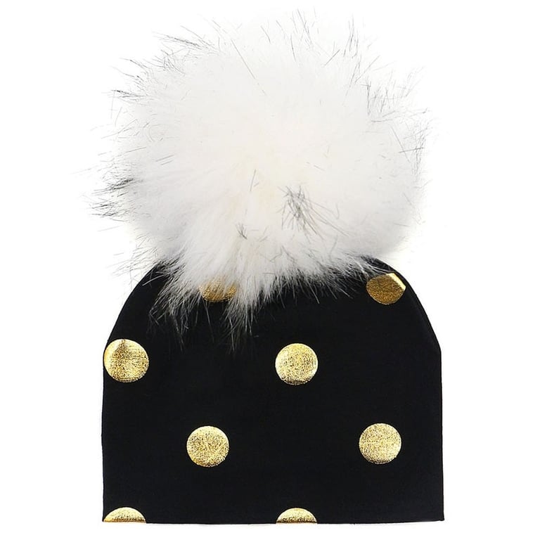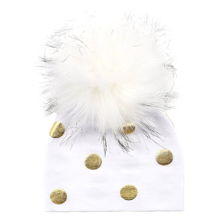 Cotton children's hat with gold polka dots.