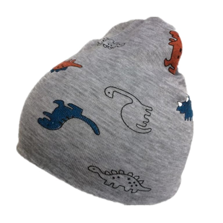 Children's cotton hat with a dinosaur print.