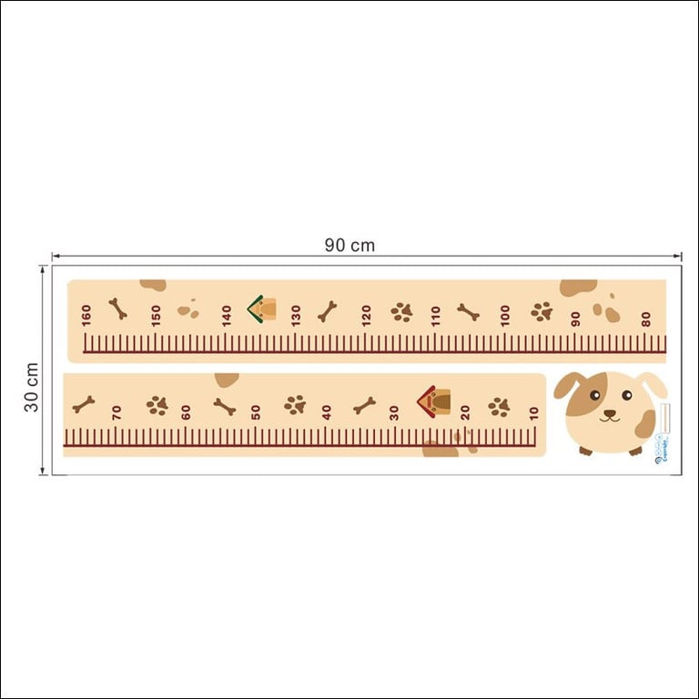 Decorative wall sticker for children's room Growth measurement meter with a dog motif.