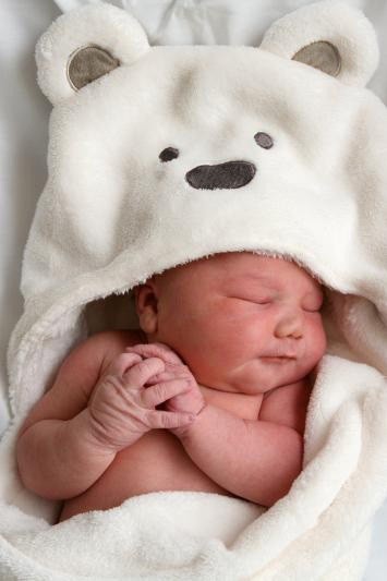 You can wrap the baby beautifully in the towel, and their head will be tucked away in the hood, keeping them warm.