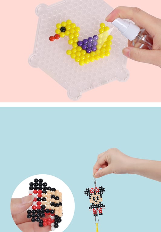 • Water beads do not need to be ironed; just spray them with water. Children can arrange a picture from the beads on the board.