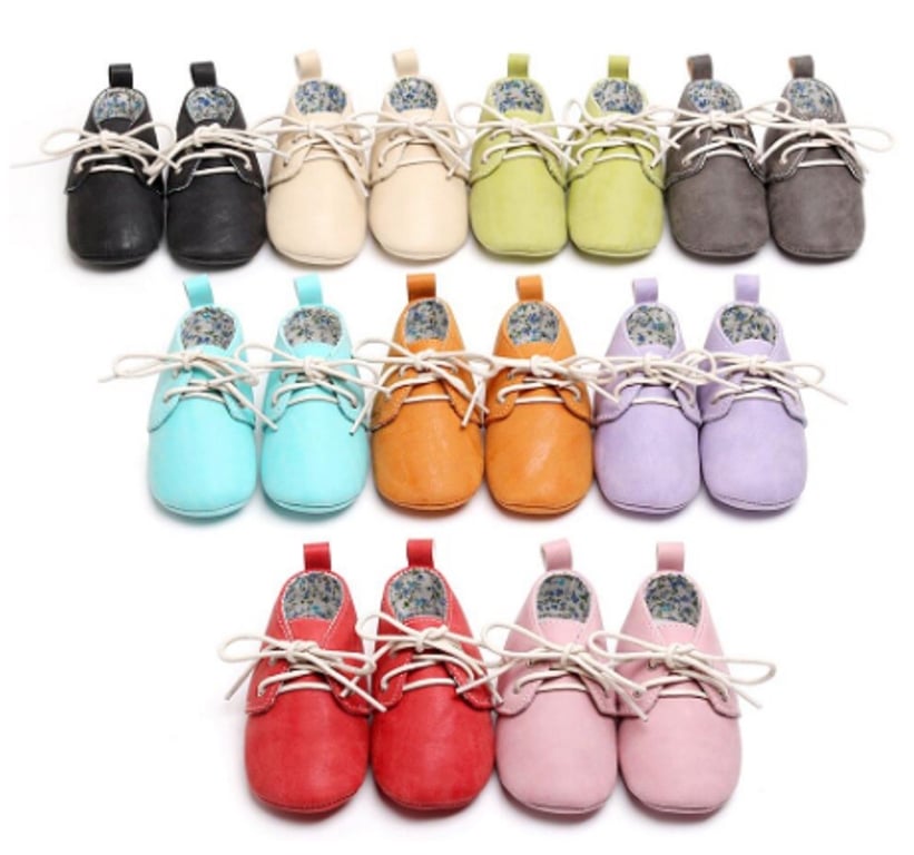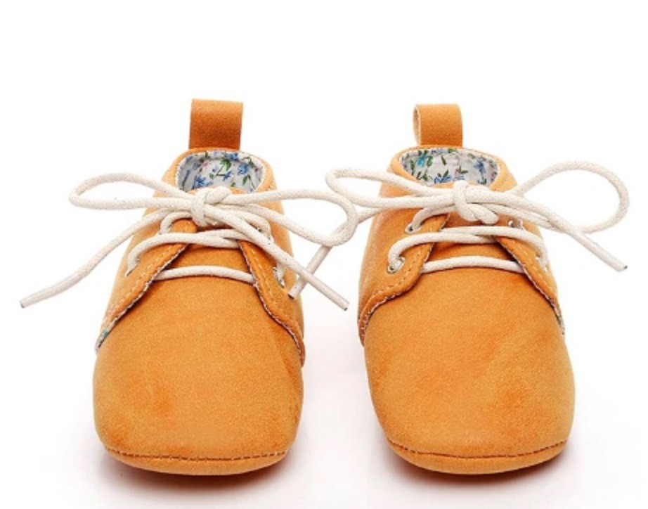 Children's leather moccasins with laces are suitable for little ones in prams, car seats, or carriers.