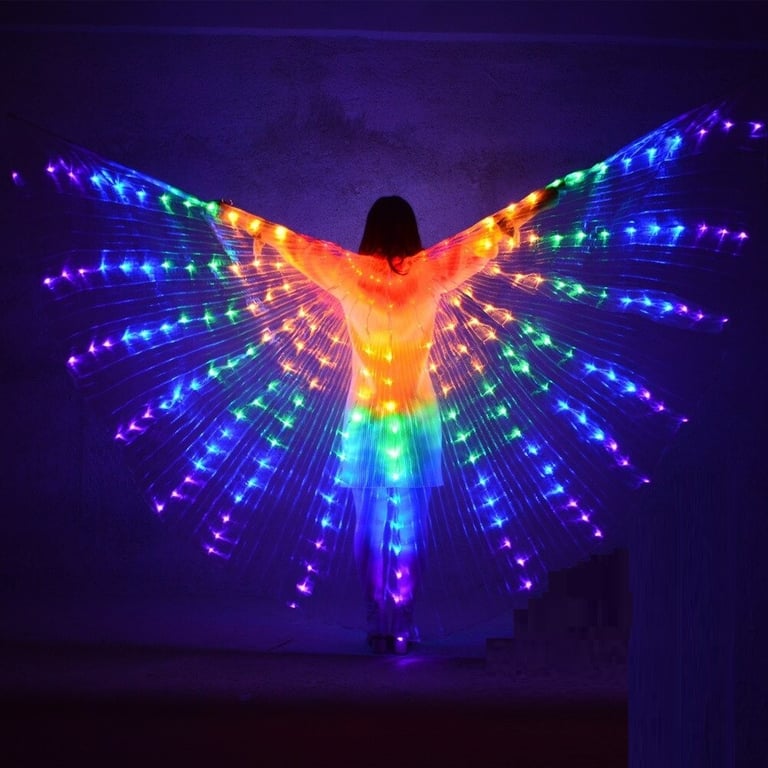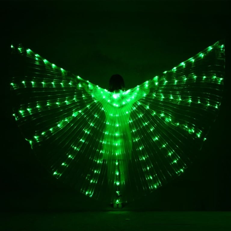 These LED wings are made from lightweight polyester. They measure 110 cm in width. They are adjustable to fit heights between 115 and 149 cm. Thanks to the built-in LEDs, they create a dazzling light show when in motion.
