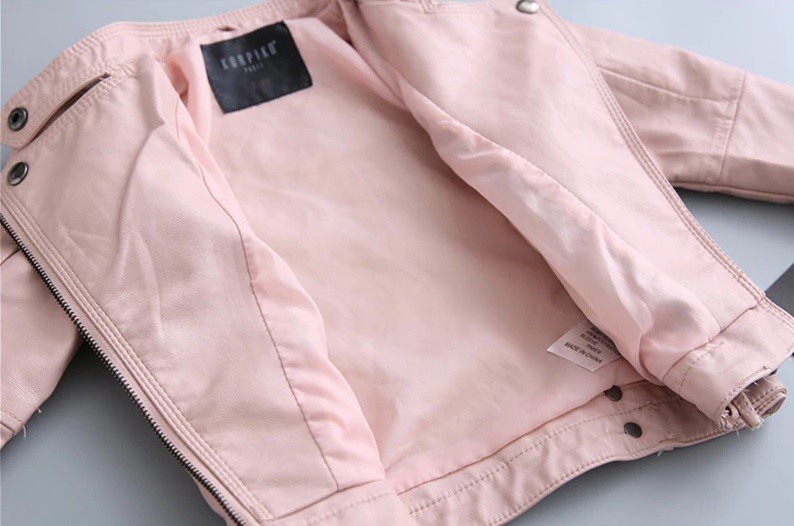 The jacket is made of artificial leather and polyester, it will keep your child warm in cooler weather and will definitely look great on them.