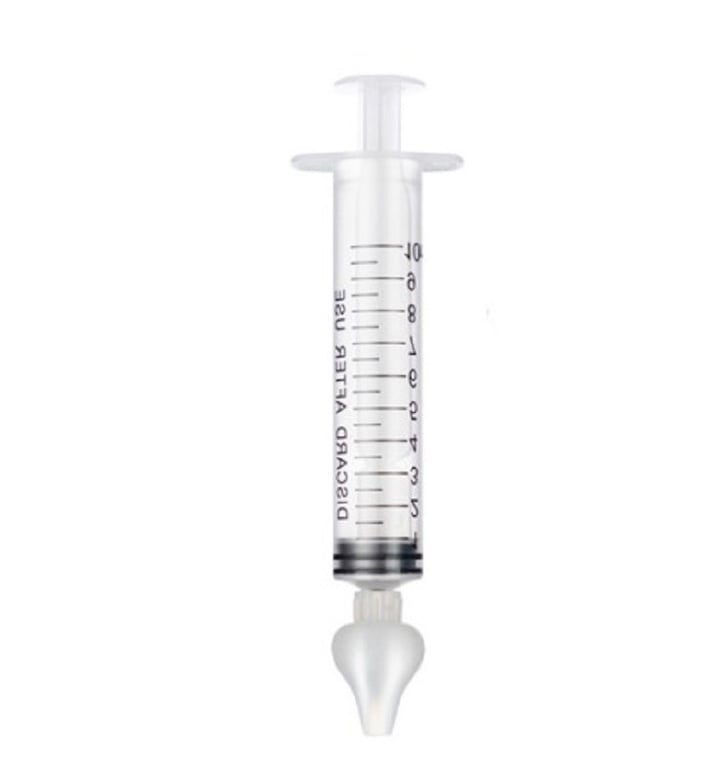 The nasal syringe is an ideal aid for difficulties with a blocked nose. It is suitable for children aged 4 years and older. It is used for rinsing the nose with saline solution.