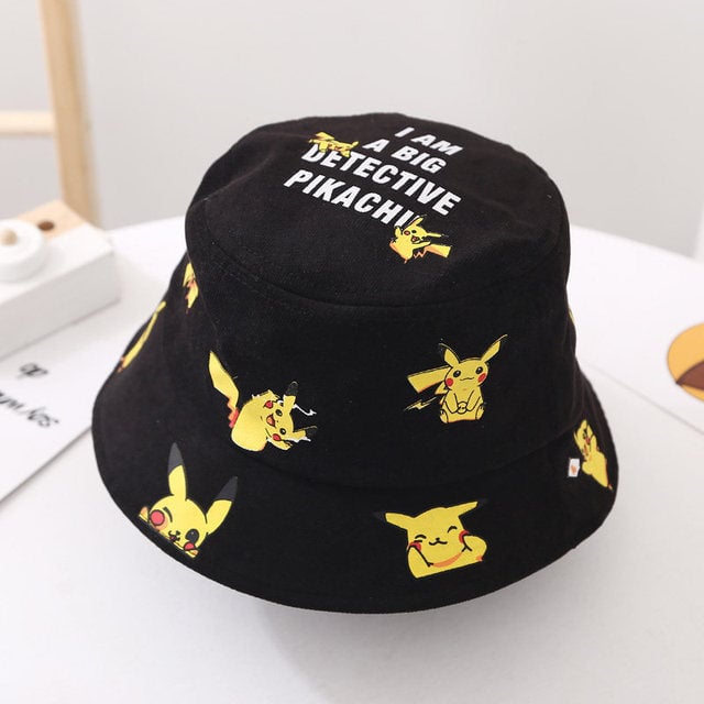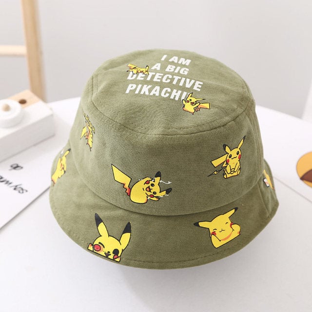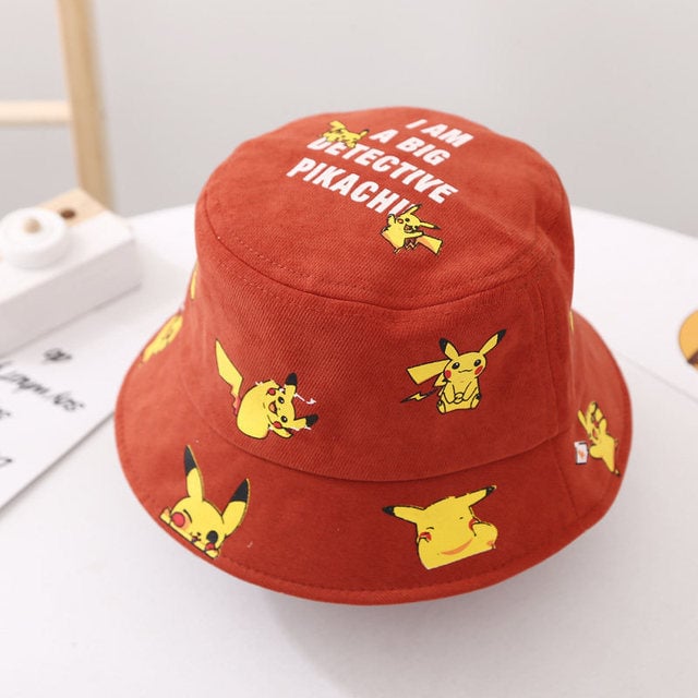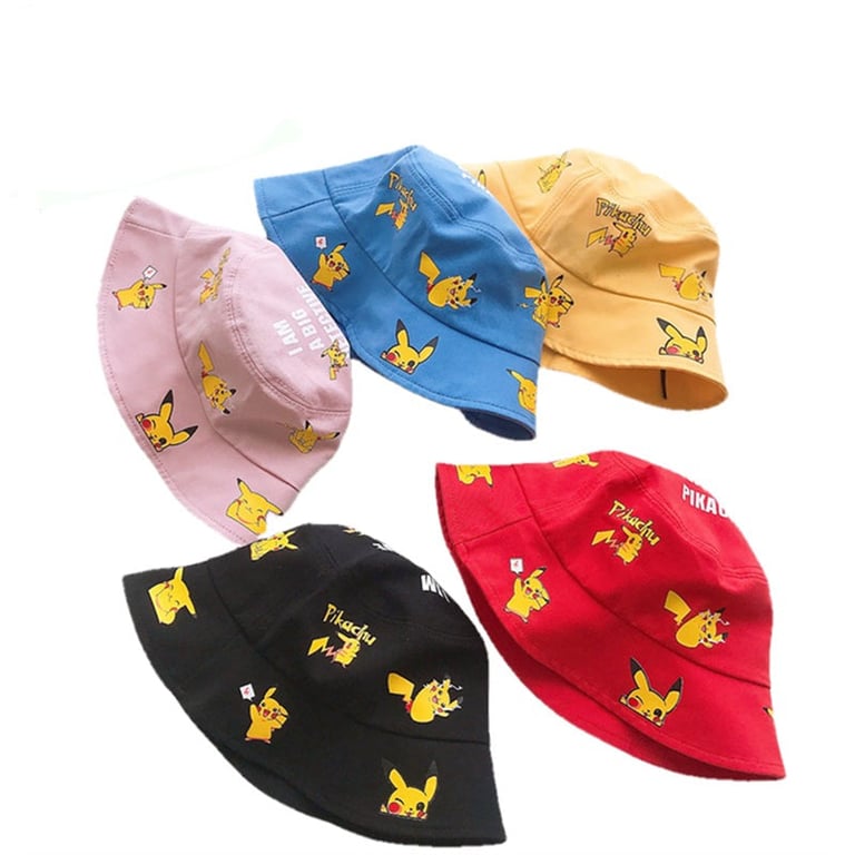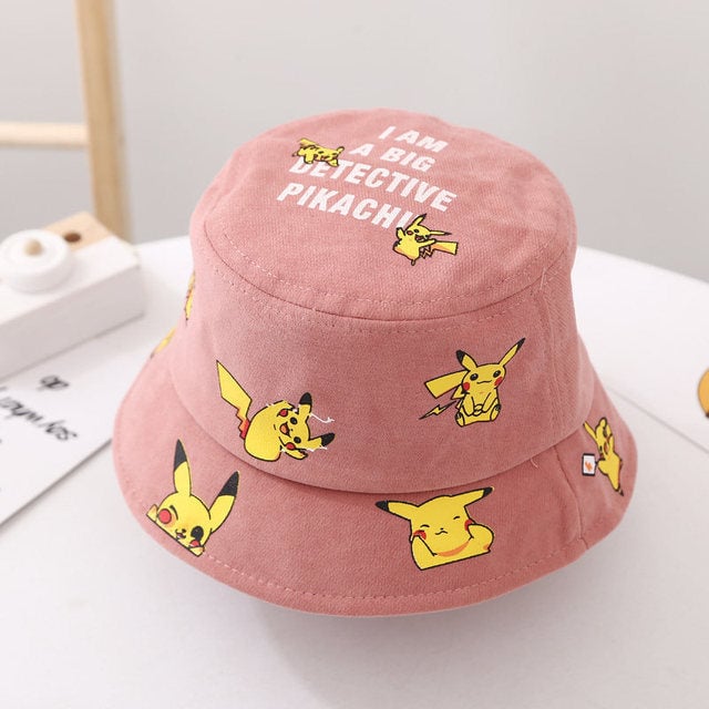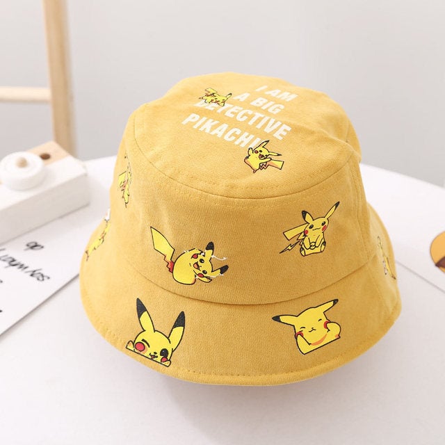Children's hat with an all-over print of Pikachu from the Pokémon series.