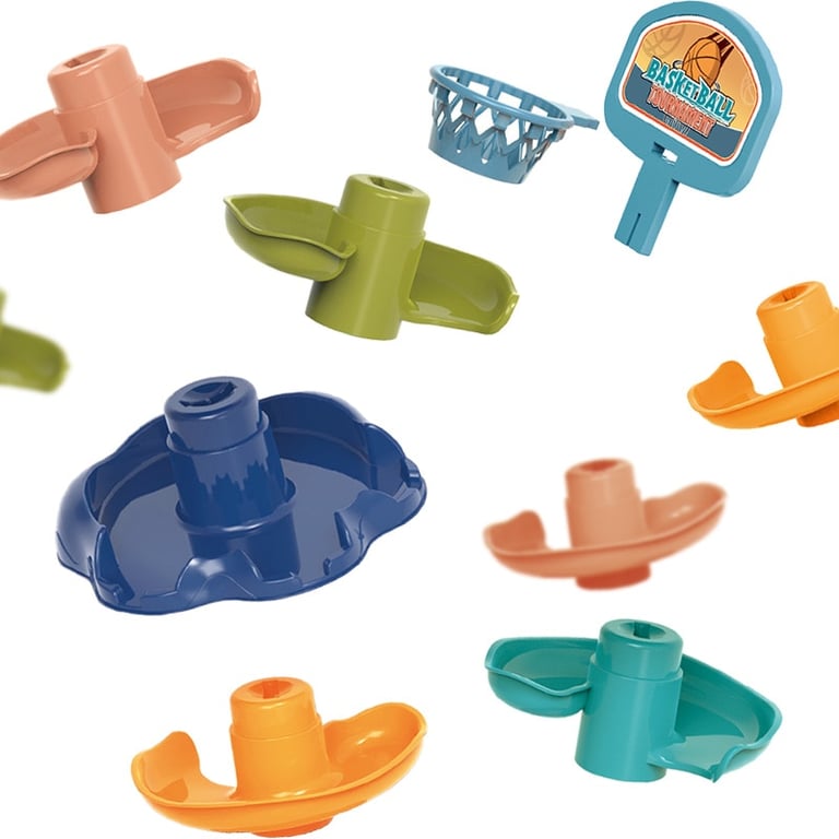 Children's play track with balls and basketball hoop