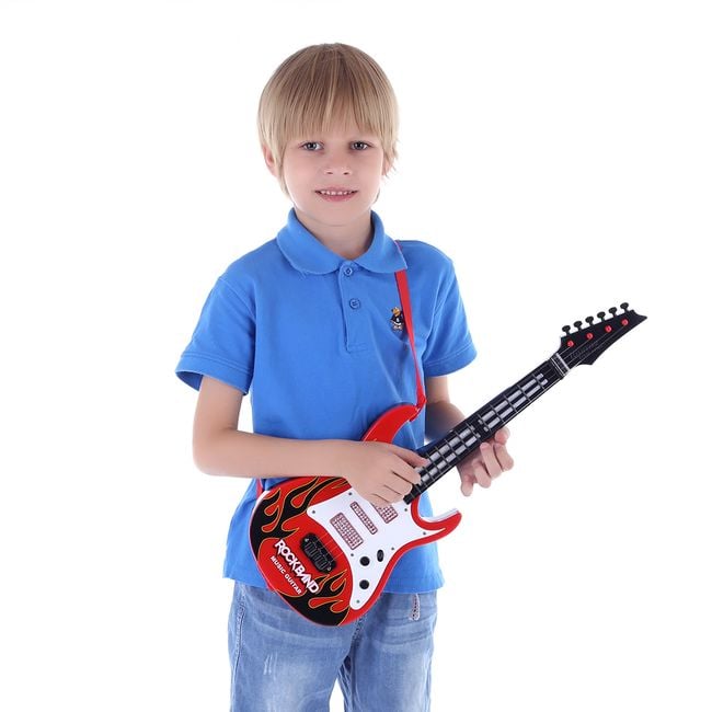 Children's play guitar in 3 colour variants.