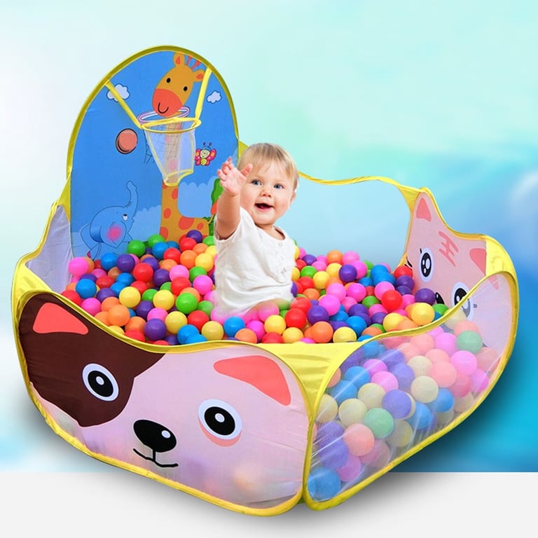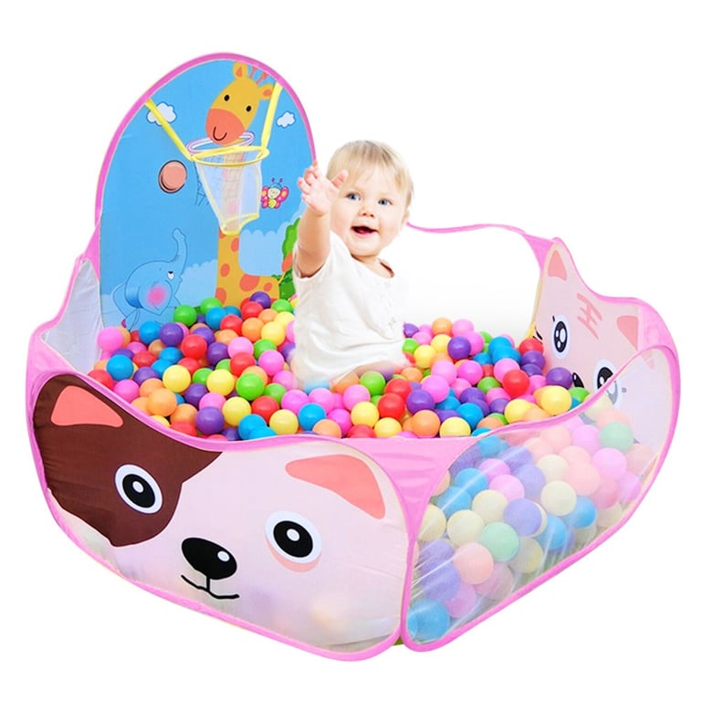The playpen comes with a basketball hoop attached, into which children can throw the balls.