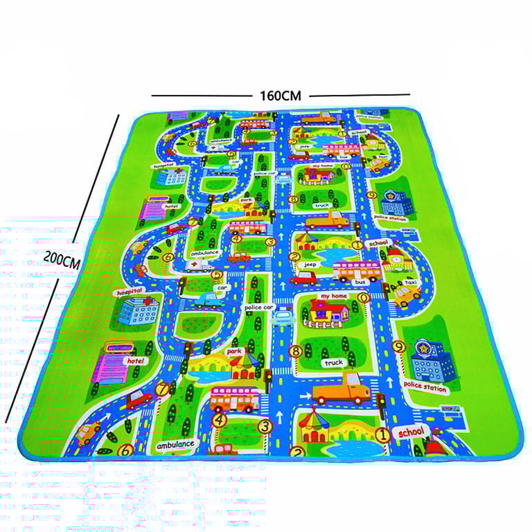 The CityRug children's area rug featuring streets and houses is one of the most popular rugs for children. The rug is very pleasant to the touch, easy to maintain, and resistant to wear, fading from sunlight, chemical agents, and moths. It is made from polypropylene, with edging on each side of the rug. The backing of the rug consists of warm felt, protecting your child from the cold of the floor, allowing them to play on it for long hours.