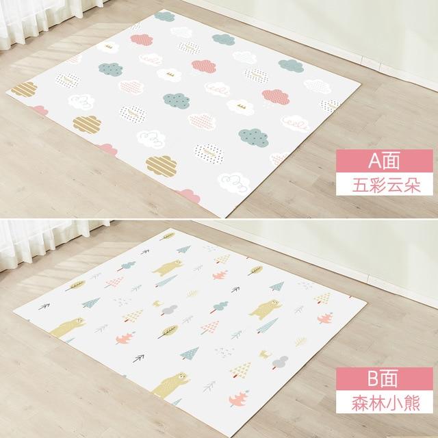 Children's rug for a child's room with pictures of clouds and other cute patterns.