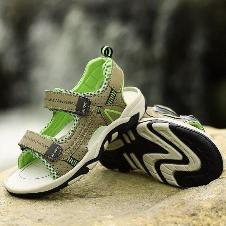 Children's sandals made from a combination of rubber sole and synthetic leather.