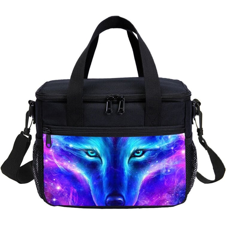 A stylish school lunch bag featuring a neon wolf is a must-have in your gear.