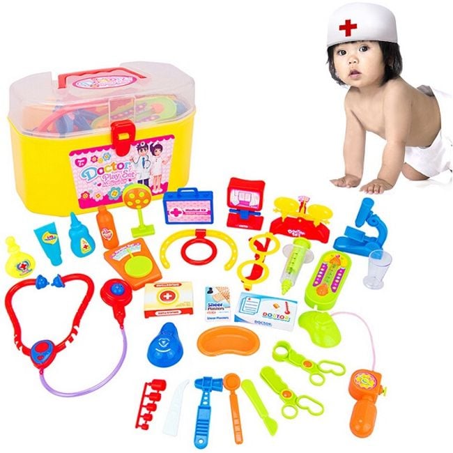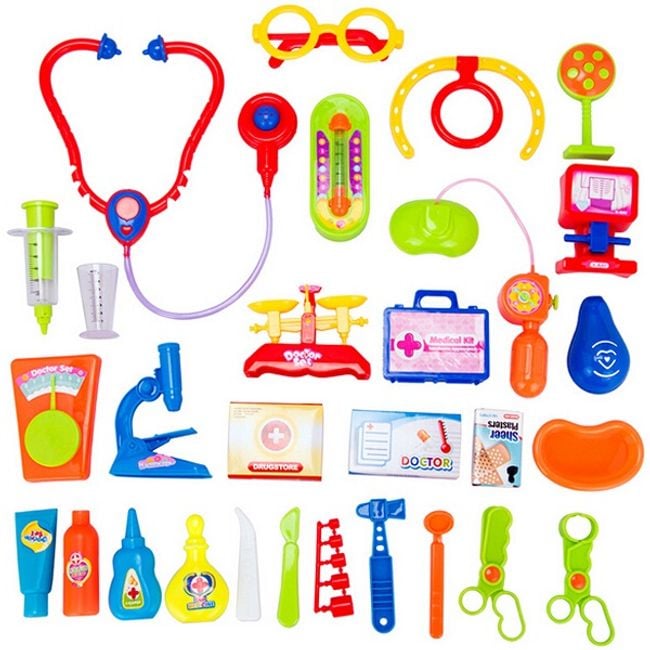 This medical kit includes many tools that a little doctor or doctor needs. It contains, for example, a stethoscope, syringe, microscope, and scalpel. A great gift for your little ones.