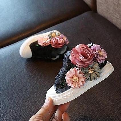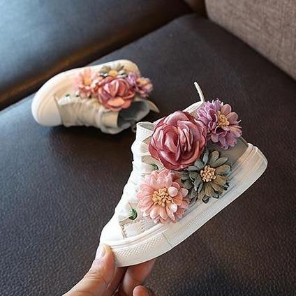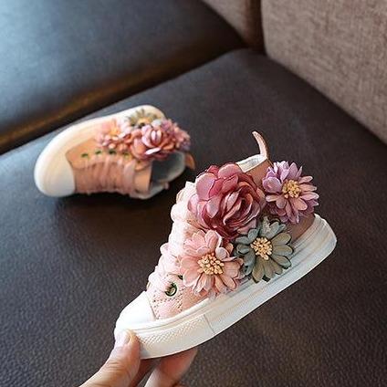 Children's shoes with a flower.