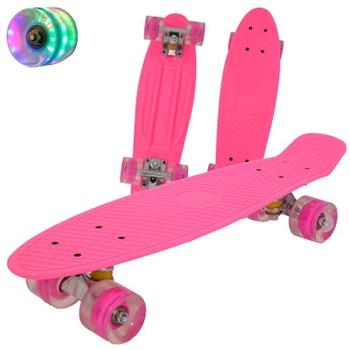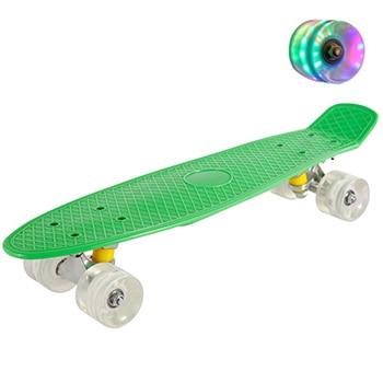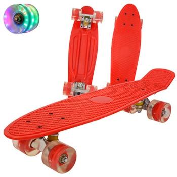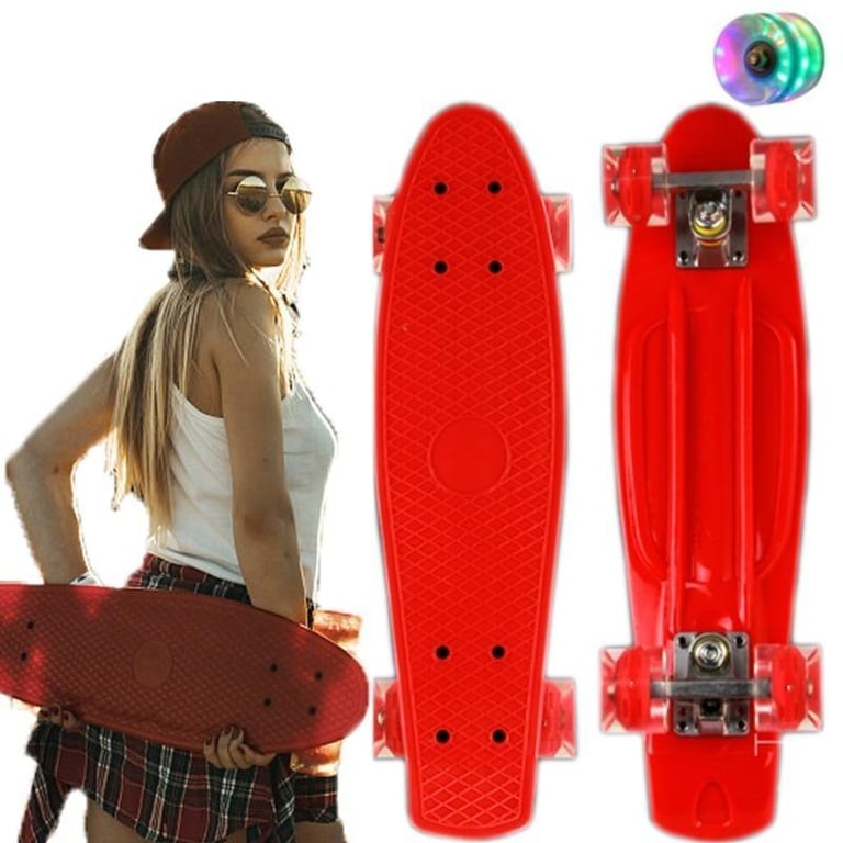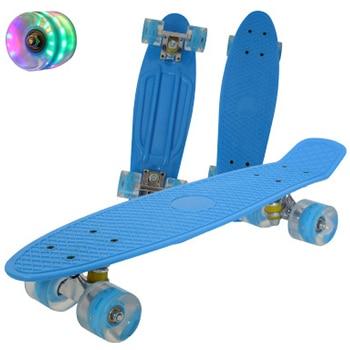 Children's skateboard Mini Cruiser Jusenda with anti-vibration bearings, non-slip deck and glowing wheels. Available in several colours.