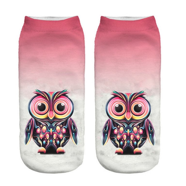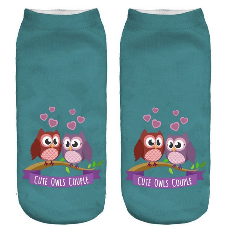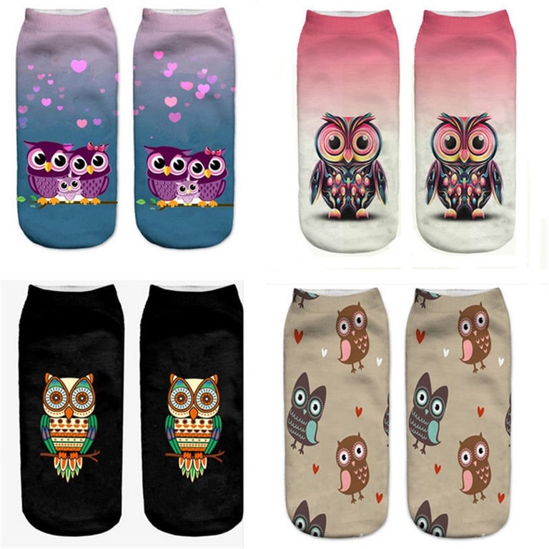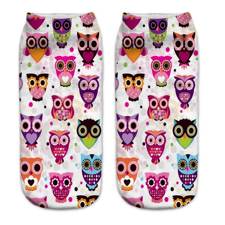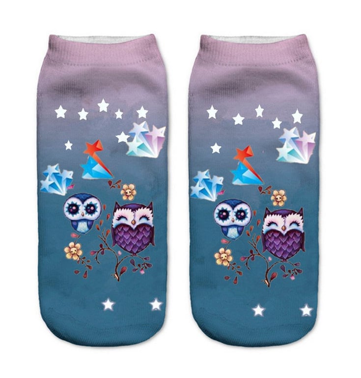 The socks feature a print of various owls.