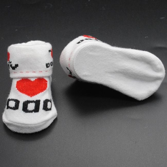 Dress your little one in these cute socks. They feature the English phrases I Love Mum or I Love Dad. The socks are very adorable. Suitable for small girls and boys.