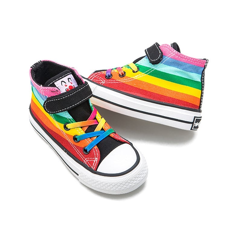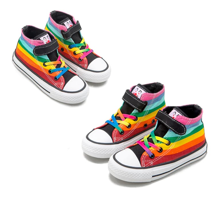 • These spring trainers are available in a colourful variant that is sure to catch attention! The children's rainbow high-top trainers provide comfort and ease with every step.