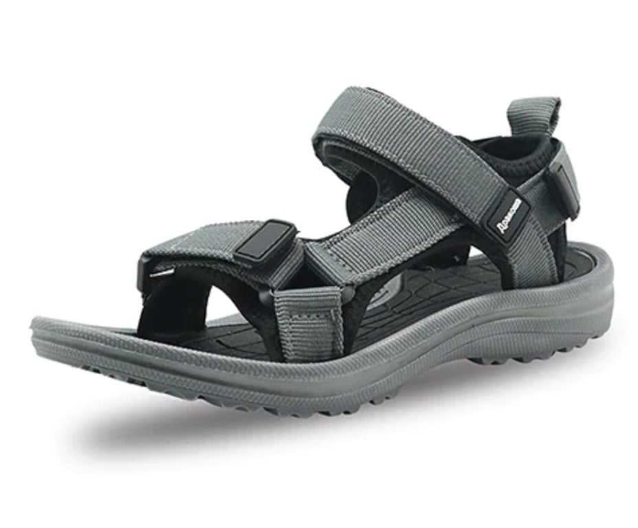 The sandals feature three adjustable Velcro straps.