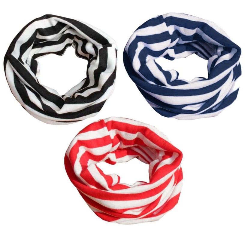 It is made from high-quality, warm cotton in an interesting striped design, and its main advantage is that, unlike a scarf, it cannot fall off the neck.
