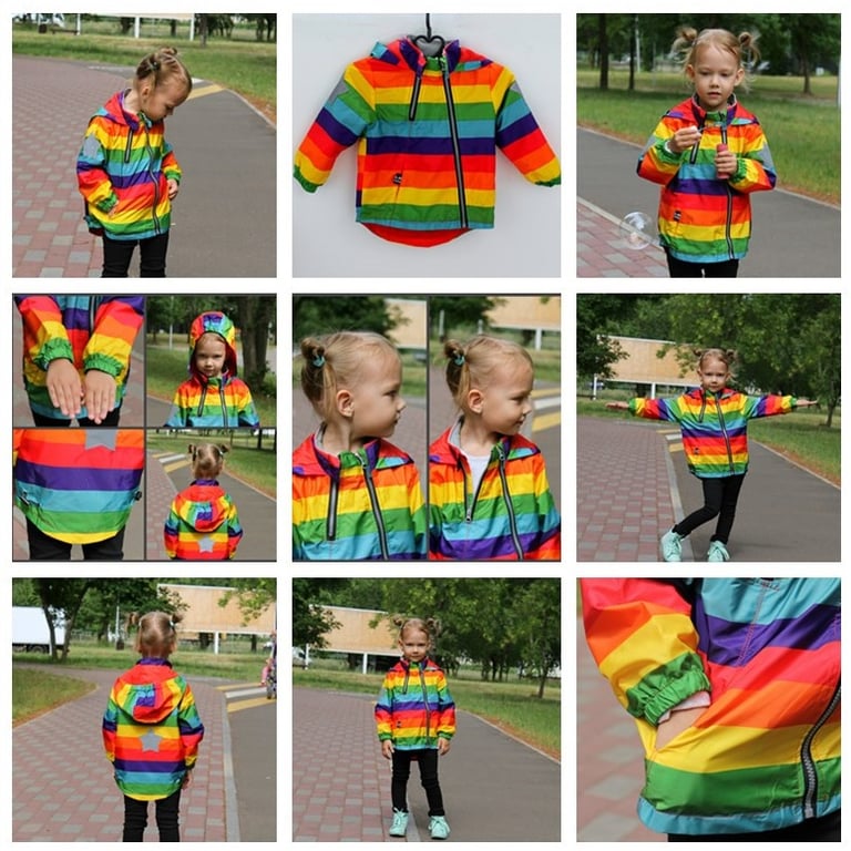 This beautiful modern windbreaker with an angled zip will look great on any little child.