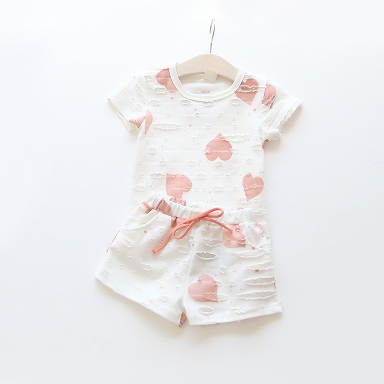 Children's summer set with a heart pattern, which includes a top and shorts.