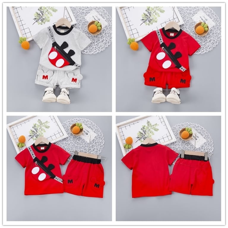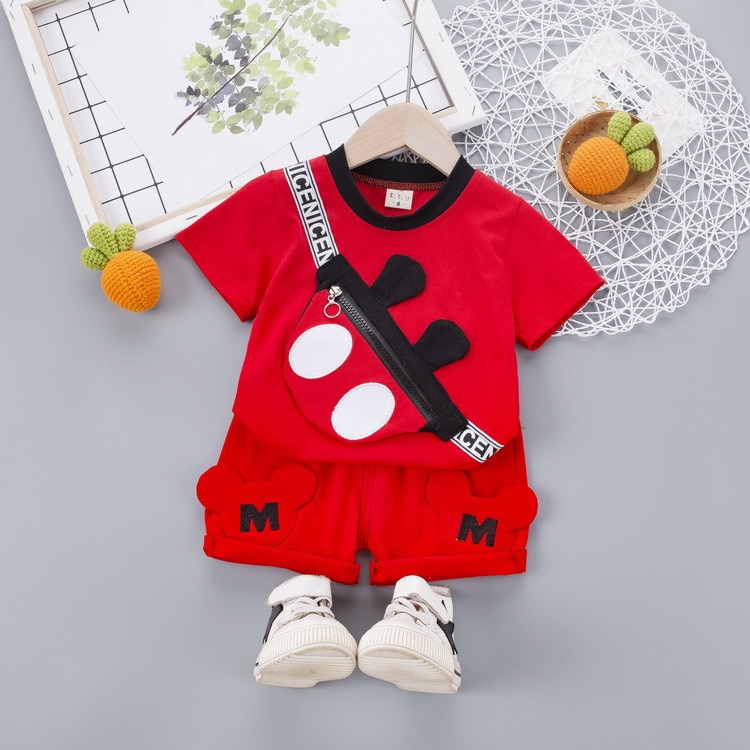 Tags: children's set, summer set, T-shirt with bum bag, T-shirt with pocket, Mickey, T-shirt, shorts, children's fashion, children's clothing