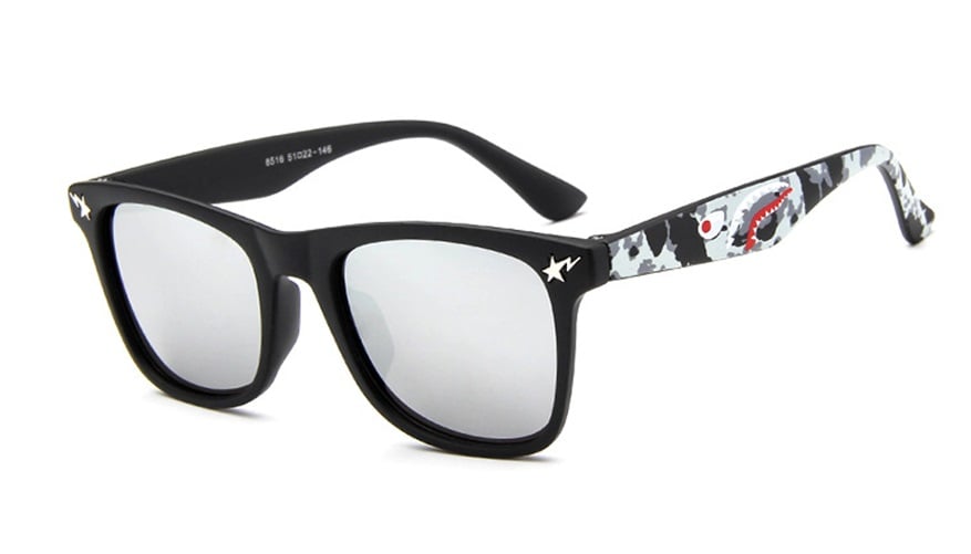 The arms of the glasses feature a camouflage print.
