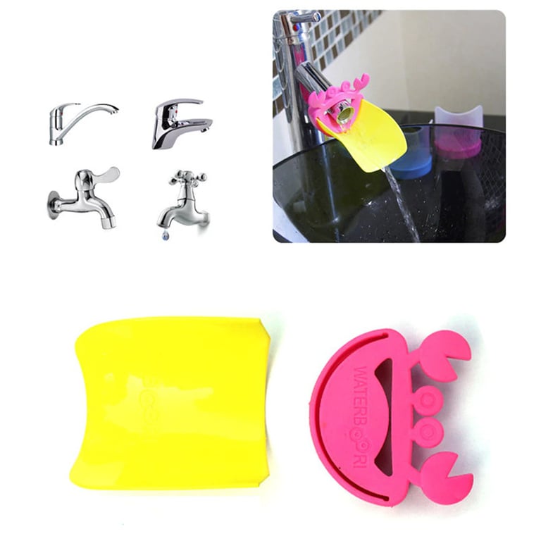 The tap attachment brings the water closer to the edge of the sink, making it easier for the child to reach and wash their hands.
