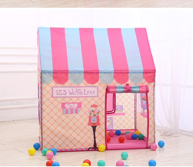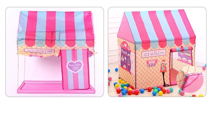 This playhouse has a metal frame, so it stands firmly.