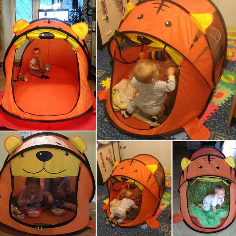 Children's tent in the shape of animals, suitable for the beach, garden, but of course also for indoors. You can fill it with balls and the children will enjoy the right fun.