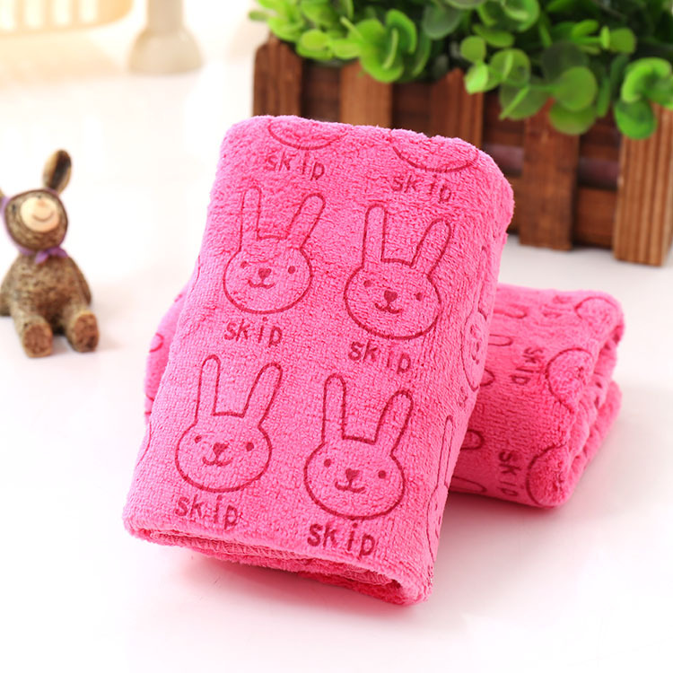 Children's towel featuring a rabbit design, available in three colours, very soft on the skin.