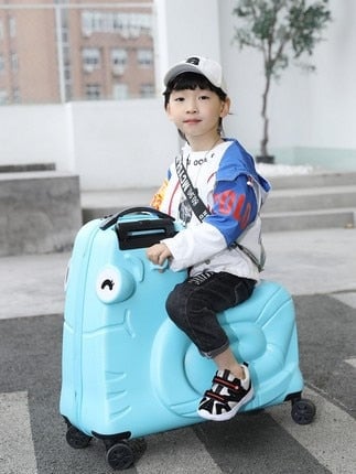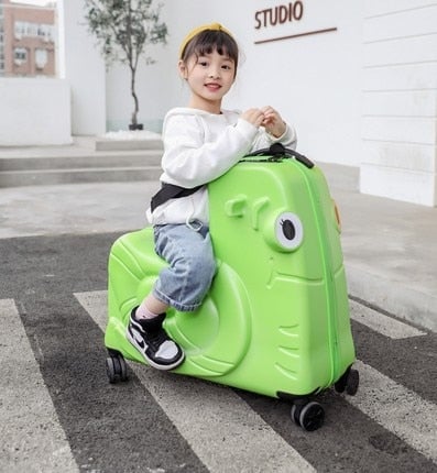 Children's colourful travel luggage for sitting.
