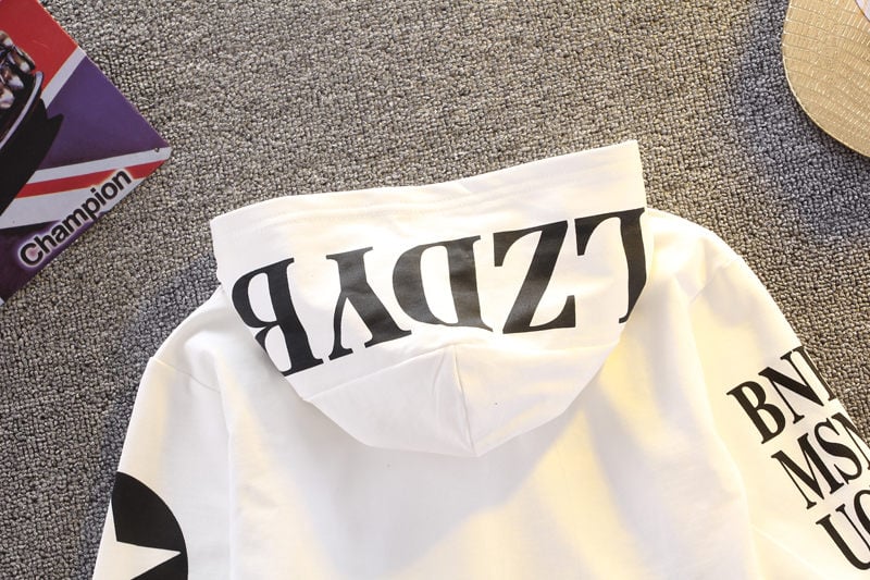 The hoodie features a hood and the cool printed designs won't go unnoticed.