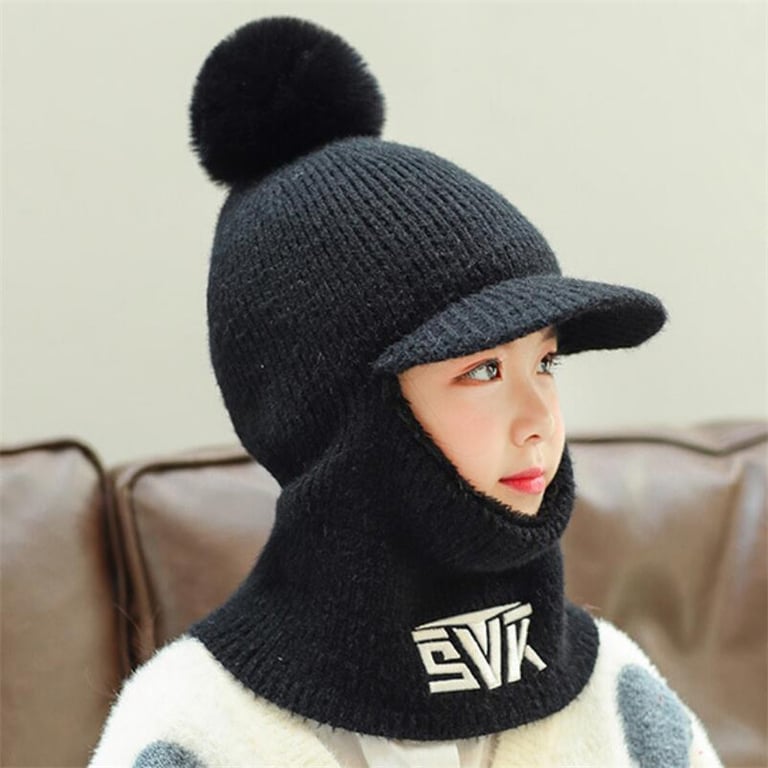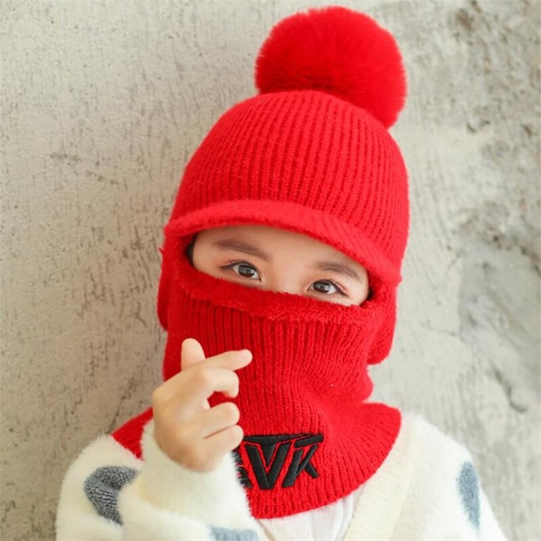 Children's winter balaclava with pom-pom