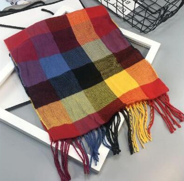 Checked scarf suitable for all seasons.