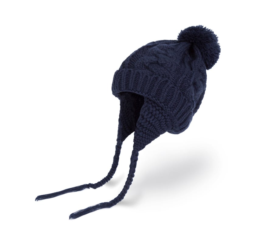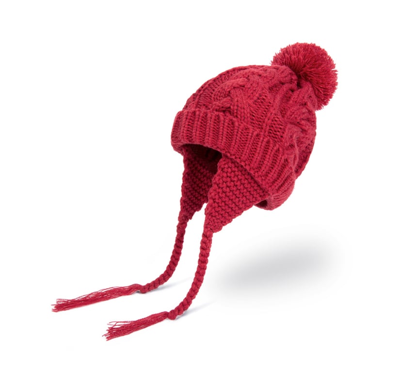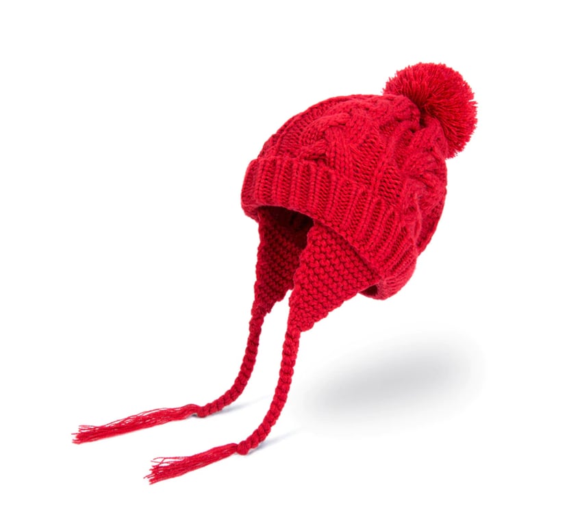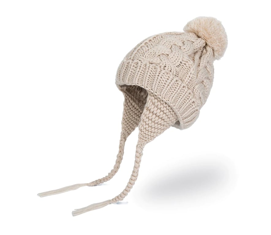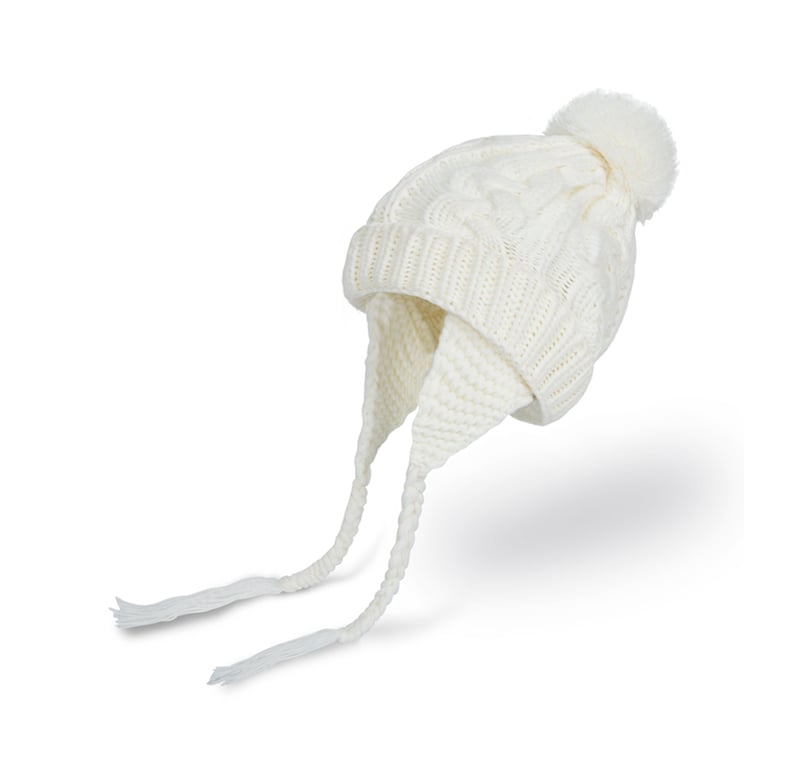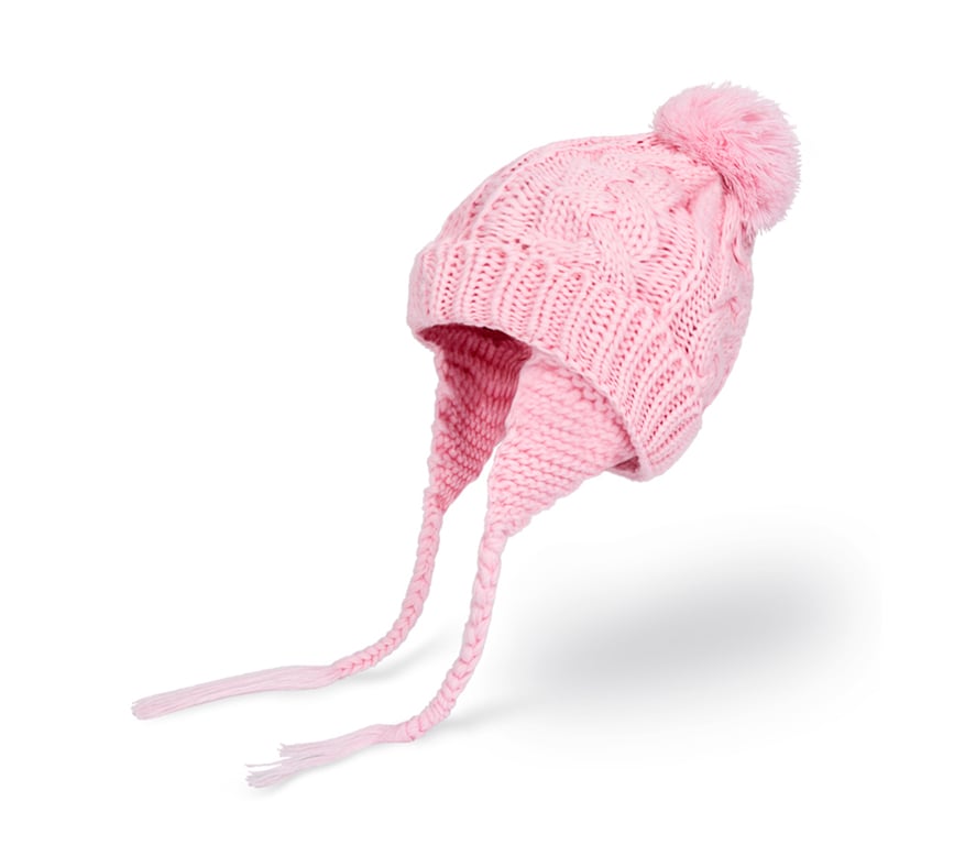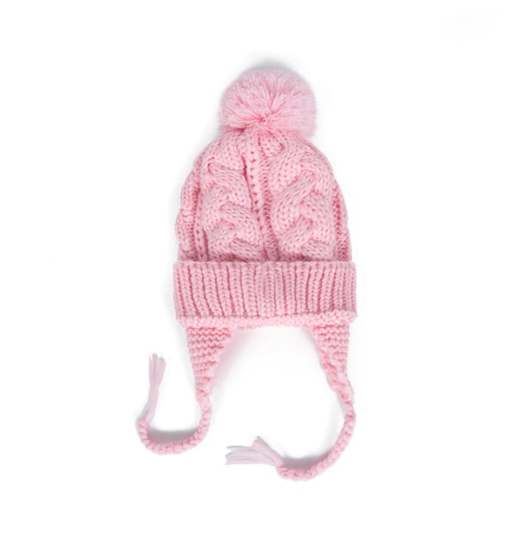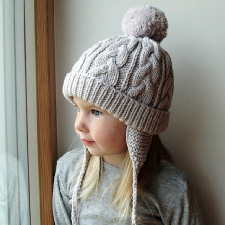 This winter hat with braids on the sides and a pom-pom will look lovely on your little one.