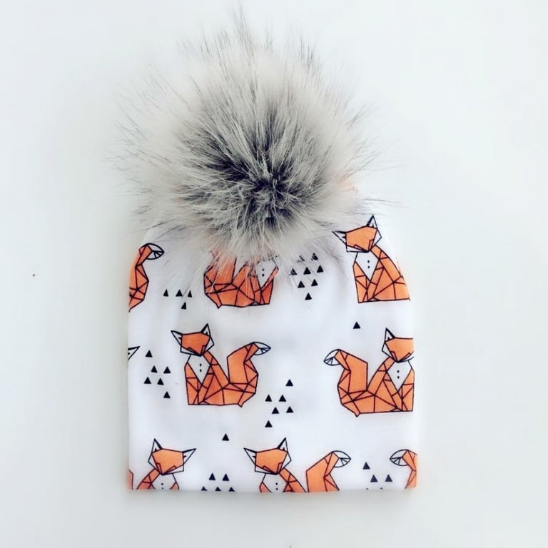 Winter cotton hat with a colourful pattern. The hat features a large fluffy pom-pom that can be detached. Available in several variations.